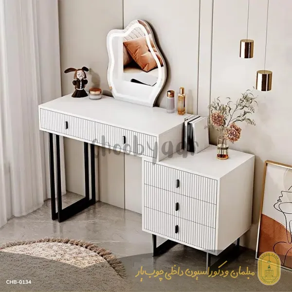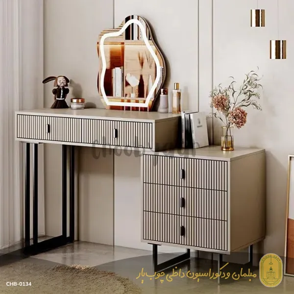 میز آرایش مدل یلنا، نمونهای شیک و مدرن برای تزئین فضای داخلی شماست. این میز با استفاده از MDF با کیفیت ساخته شده و به آینه بزرگ و کشوهای جادار مجهز است. طراحی منحصر به فرد آن به بهترین نحو تمام نیازهای شما را برآورده میکند.